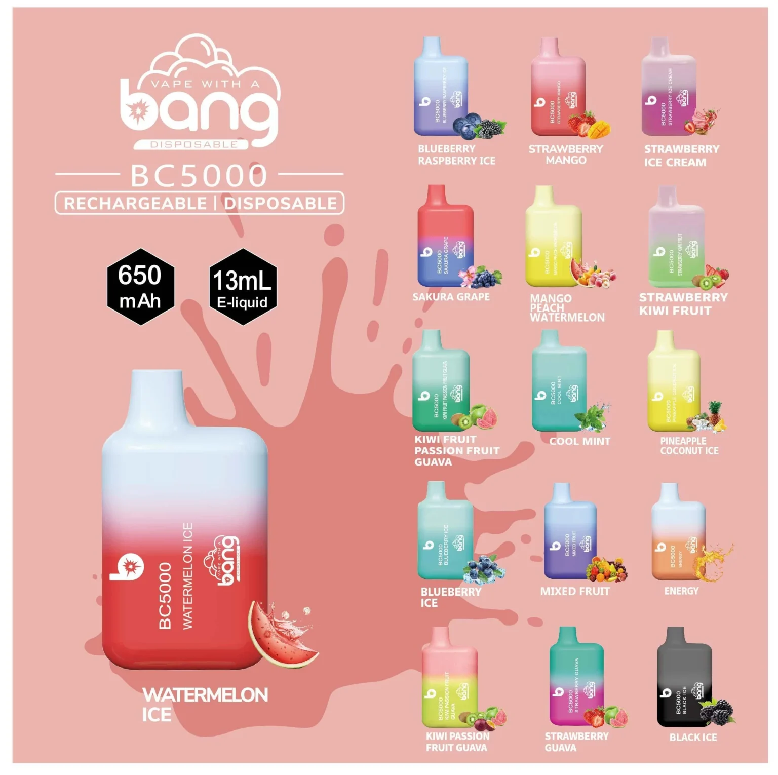 Here are some flavors of the Bang BC5000 Box 5000 Puffs: