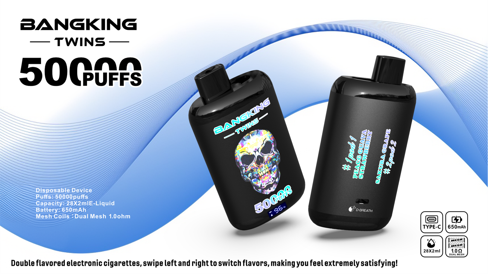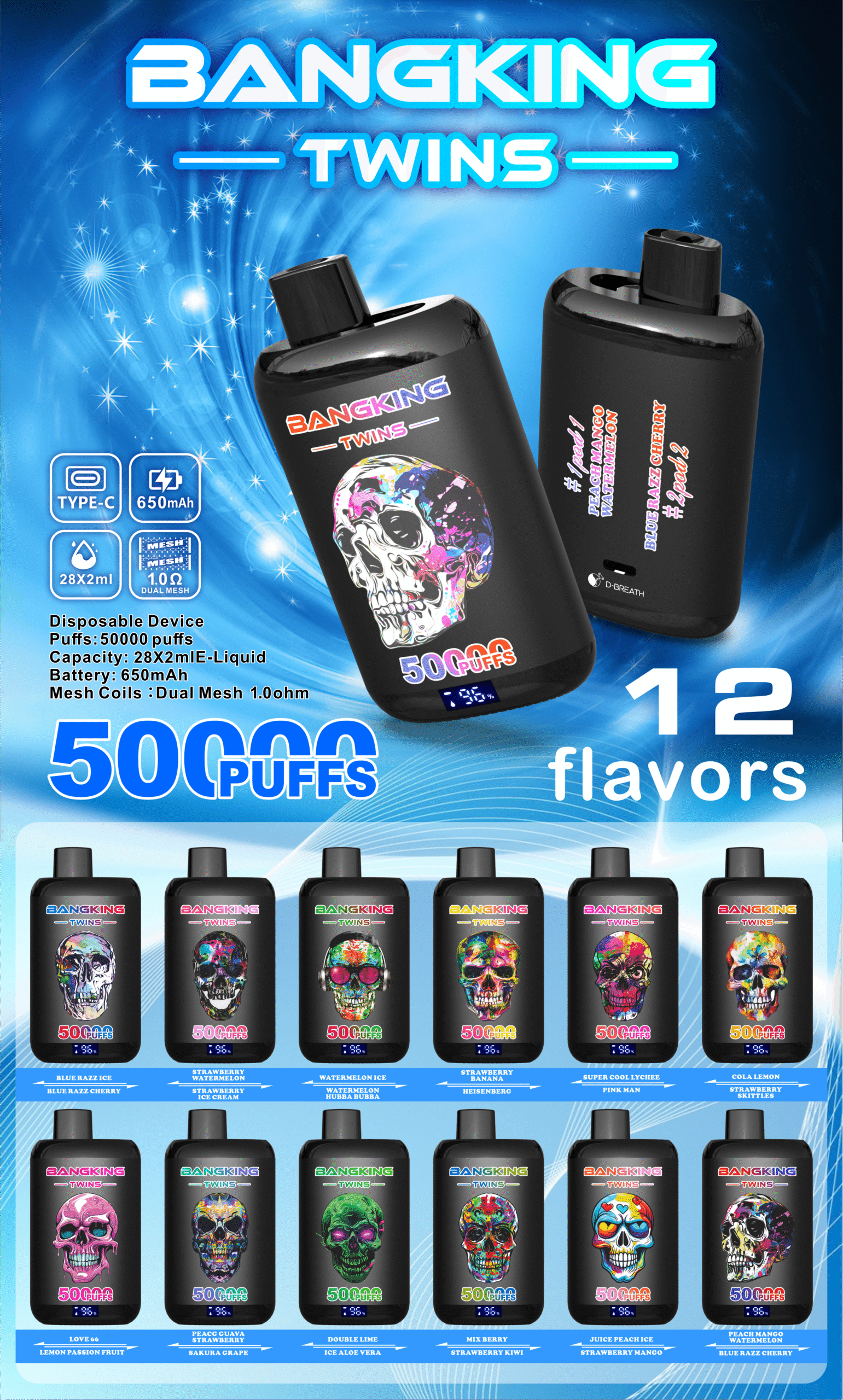 The Bang King Twins 50K DSK054 is crafted for performance and built for endurance. Below are its defining characteristics that make it one of the most sought-after wholesale disposable vapes on the market: