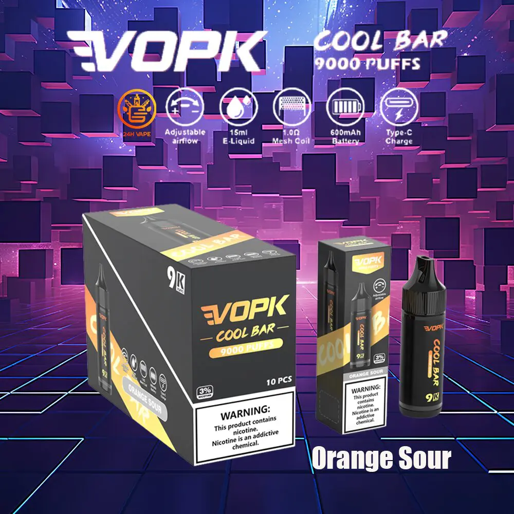 VOPK Cool Bar 9000 Puffs Disposable Vape Pen, the latest innovation in portable vaping technology. With a capacity of 9000 puffs, this device ensures long-lasting enjoyment and convenience.